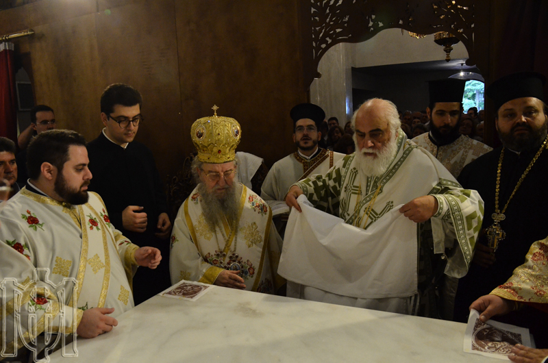 Το απόγευμα του Σαββάτου, 27η Μαΐου, ο Παναγιώτατος Μητροπολίτης Θεσσαλονίκης κ. Άνθιμος προσεκόμισε κατά την τυπική διάταξη τα μαρτυρικά λείψανα των Αγίων μέσα σε ασημένια λειψανοθήκη, την οποία και άφησε επάνω στην αγία Τράπεζα. Στη συνέχεια ετελέσθη ο Πανηγυρικός Εσπερινός των Εγκαινίων προεξάρχοντος του Παναγιωτάτου και με τη συμμετοχή κληρικών και πλήθους ευλαβών προσκυνητών οι οποίοι από νωρίς προσήλθαν στον ιερό Ναό κάτω από δυσμενείς καιρικές συνθήκες.