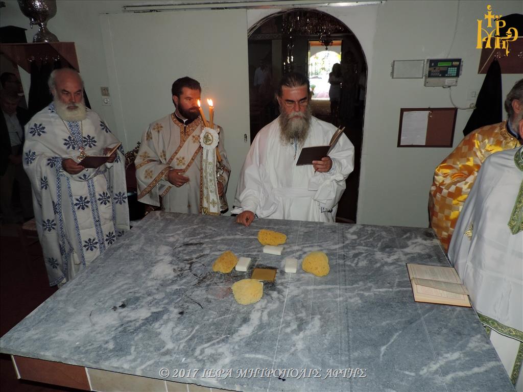 Το Σάββατο 26 Αυγούστου 2017, το πρωΐ, ετελέσθησαν τα Εγκαίνια του Ιερού Ναού. Ο Σεβασμιώτατος Μητροπολίτης Άρτης, κατά την διάρκεια των Εγκαινίων εξηγούσε στους πιστούς τα τελούμενα.