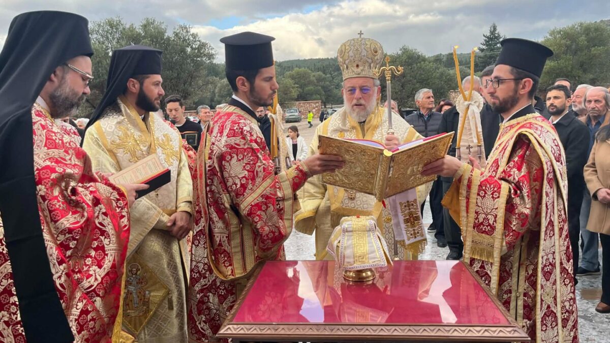 Της τελετής των Εγκαινίων προέστη ο Σεβασμιώτατος Μητροπολίτης μας συμπαραστατούμενος από τον Θεοφιλέστατο Επίσκοπο Ολύμπου κ. Κύριλλο. Στο φυτό της Αγίας Τραπέζης του ιερού Ναού κατετέθησαν αποτμήματα από τα τίμια Λείψανα των Αγίων: Νεομάρτυρος Γεωργίου του εν Ιωαννίνοις, Τεσσάρων Νεομαρτύρων των εν Ρεθύμνῃ και Νεομάρτυρων Γαβριήλ και Κερμιδώλους.