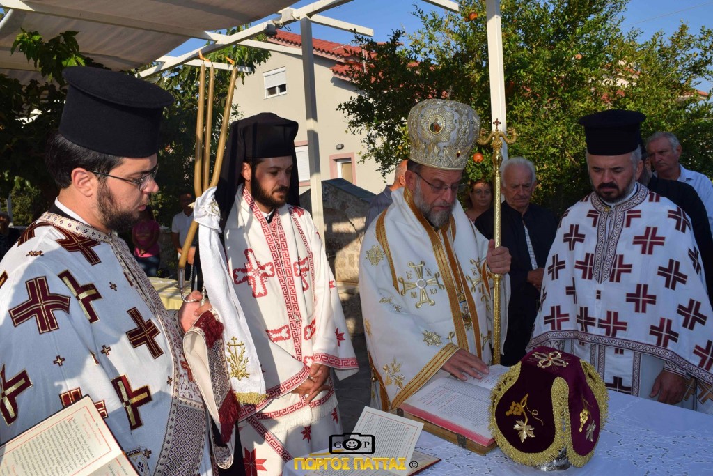 Στην ομιλία του αναφέρθηκε στον κοινό εορτασμό της Παναγίας «Μυρτιδιωτίσσης» και των Αγίων Θέκλης και Κόπριος, στον θαυμαστό βίο τους και  συνεχάρη τους κτίτορες για τον Ναό που οικοδόμησαν και με ιδιαίτερη καλαισθησία διακόσμησαν και ευχήθηκε τα δέοντα. Ιδιαίτερα αναφέρθηκε στο γεγονός της παραχώρησης του ιερού Ναού στην Ενορία Παστίδας, εκφράζοντας προς αυτούς τον δίκαιο έπαινο και την ευαρέσκεια της Εκκλησίας.