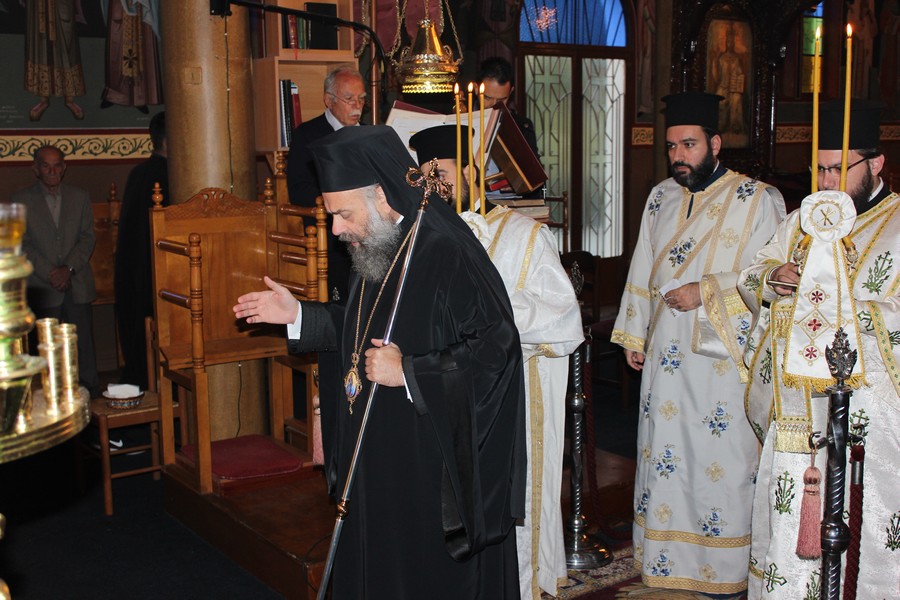 Προ της απολύσεως, ο Σεπτός Ποιμενάρχης μας, στην σύντομη ομιλία του, δοξολόγησε τον Κύριο της Δόξης και ευχαρίστησε τον Πανοσιολογιώτατο Πρωτοσύγκελλό μας π. Αμφιλόχιο Παπανδρέου για την επιστασία της διεξαγωγής των Εγκαινίων, τον π. Χρήστο Νταφούλη, Εφημέριο του Ιερού Ναού και το Εκκλησιαστικό Συμβούλιο καθώς και τους υπολοίπους Ιερείς, τους Ιεροψάλτες και τον ευσεβή λαό του Θεού.