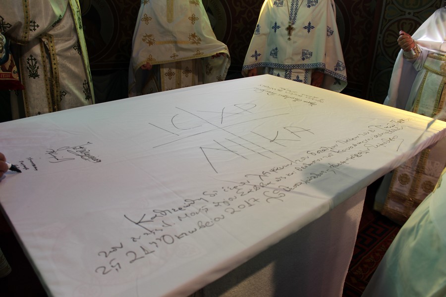 Ο Σεβασμιώτατος Μητροπολίτης Θεσσαλιώτιδος κ. Τιμόθεος, την Παρασκευή 20 Οκτωβρίου 2017, χοροστάτησε στην ακολουθία του Εσπερινού των Εγκαινίων.Στην ομιλία ανεφέρθη στην τάξη των Εγκαινίων ενός Ιερού Ναού και του θυσιαστηρίου αυτού.