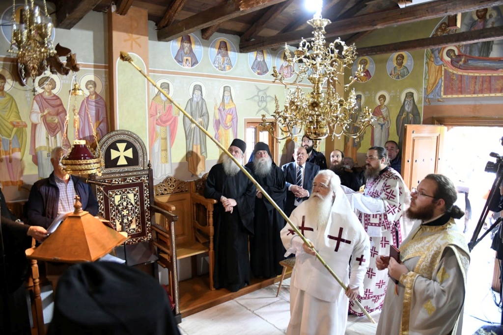 Στο τέλος της Θείας Λειτουργίας, ο Ηγούμενος της Μονής Αρχιμ. Νικόδημος Αγαθονίκου τόνισε την σημασία της προσευχής μας για τους κεκοιμημένους, στην οποία ιδιαιτέρως επιδίδονται οι Άγιοι. «Καρπός προσευχής και αγάπης», τόνισε ο π. Νικόδημος, «είναι και αυτός ο Κοιμητηριακός Ναός, που οικοδομήθηκε με την μέριμνα του αειμνήστου καθηγουμένου της Μονής Γέροντος Αιμιλιανού. Εδώ θα αναπέμπονται δεήσεις και ικεσίες και θα τελούνται Θείες Λειτουργίες για τους κεκοιμημένους, Μοναχούς και λαϊκούς αδελφούς μας». Ο π. Νικόδημος αναφέρθηκε στην εγκατάλειψη που γνώρισε η Μονή επί έναν και πλέον αιώνα, αλλά και στην αναγέννησή της τα τελευταία είκοσι χρόνια, ενώ εξήρε την προσφορά του απλού λαού, που συνέδραμε καθοριστικά για την ανοικοδόμηση του Ιερού Παρεκκλησίου.