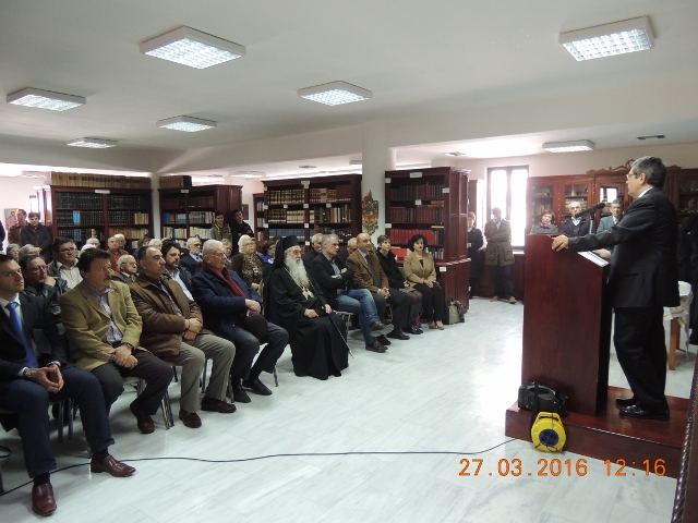 Ακολούθησε ομιλία από τον Διευθυντή του Κέντρου κ. Εμμανουήλ Βαρβούνη, καθηγητή του Δημοκριτείου Πανεπιστημίου Θράκης και πρόεδρο του Τμήματος Ιστορίας και Εθνολογίας, ο οποίος εδώ και χρόνια είχε την ευθύνη της συγκρότησης, κατάταξης και μελέτης των περιεχομένων της Βιβλιοθήκης. Στην ομιλία αυτή αναφέρθηκαν τα σχετικά με τις εκκλησιαστικές, ενοριακές και μοναστηριακές, βιβλιοθήκες της Σάμου, και ό,τι αφορά τη συγκρότηση, την κατάταξη και το περιεχόμενο της Μητροπολιτικής Βιβλιοθήκης. Ακολούθησε σύντομη ομιλία του Σεβασμιωτάτου κ. ΕΥΣΕΒΙΟΥ, και φιλόξενο κέρασμα. Παρέστησαν ο Βουλευτής κ. Δ. Σεβαστάκης, ο Δήμαρχος Σάμου κ. Μιχ. Αγγελόπουλος, ο κ. Ταξίαρχος Δημοσθένης Βιτετζάκης, ο Πρόεδρος του Δημοτικού Συμβουλίου κ. Κων/νος Αμυρσώνης και μέλη αυτού, εκπαιδευτικοί και πλήθος κόσμου.