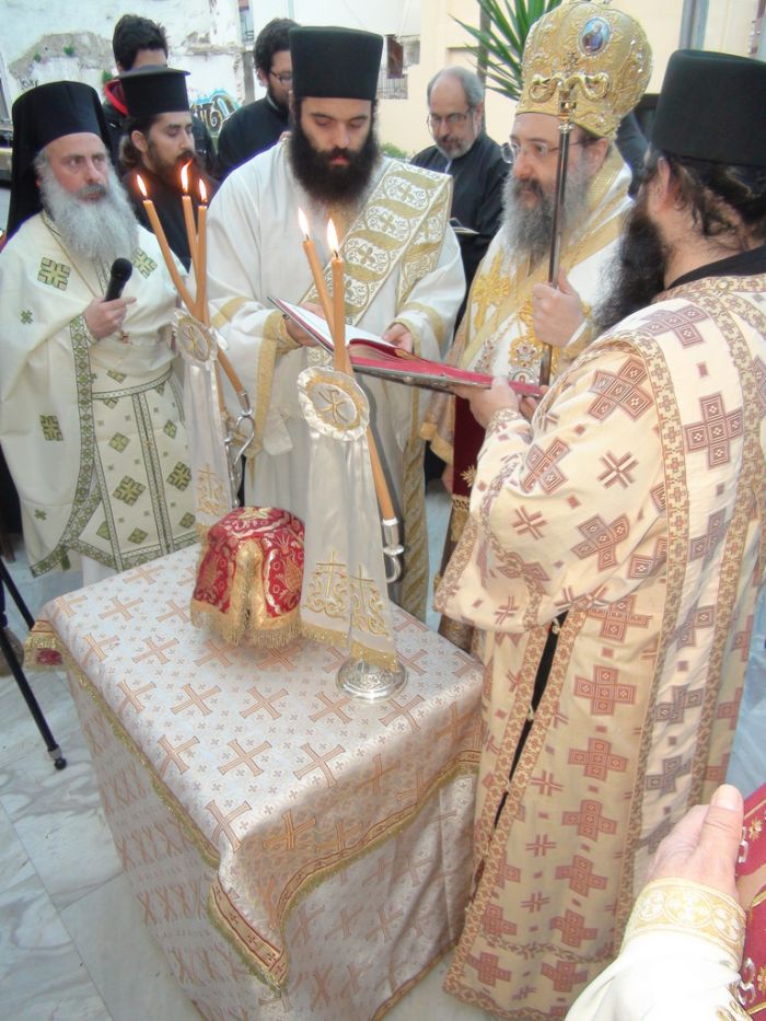 Την παραμονή έγινε η κατάθεσις των Ιερών Μαρτυρικών Λειψάνων από τον Σεβασμιώτατο Μητροπολίτη Πατρών Χρυσόστομο και εν συνεχεία ετελέσθη ο μέγας Εσπερινός, χοροστατούντος του Σεβασμιωτάτου Μητροπολίτου Πατρών κ.κ. Χρυσοστόμου και συγχοροστατούντος του Θεοφιλεστάτου Επισκόπου Κερνίτσης κ. Χρυσάνθου.
