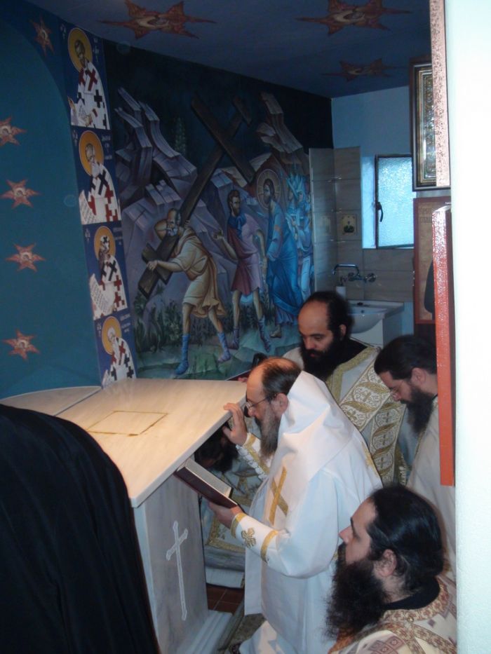 Επίσης, ο Σεβασμιώτατος επήνεσε τον προιστάμενο του Ιερού Ναού, Αρχιμ. π. Θεοδόσιο Τσιτσιβό, και τους άλλους Ιερείς του Ναού, π. Σπυρίδωνα Σταθούλια και π. Αναστάσιο Γκοτσόπουλο, όπως και όλο το προσωπικό του Ναού για τον ευτρεπισμό του Παρεκκλησίου και την όλη εργασία στον Ναό και στην Ενορία.