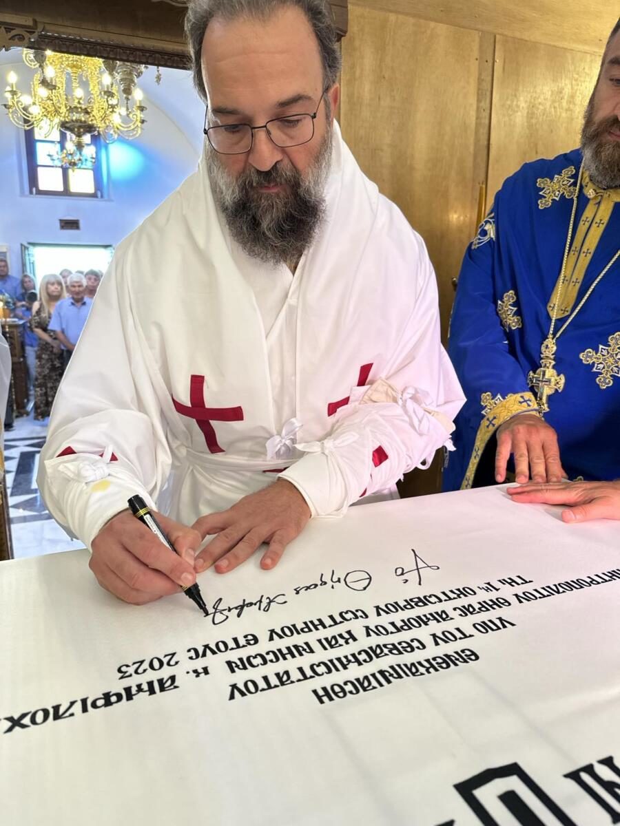 Ευχαρίστησε τέλος τόσο τον Γενικό Αρχιερατικό Επίτροπο της Ιεράς Μητροπόλεως που είχε αναλάβει την οργάνωση της τελετής, όσο και τους ιεροψάλτες που διηκόνησαν στο ιερό αναλόγιο κ.κ. Νικόλαο Βαρβαρρήγο και Θεοδόσιο Φουστέρη.