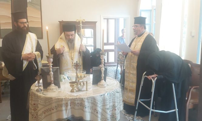 Ὁ Σεβασμιώτατος Μητροπολίτης, πνευματικὸς προστάτης τῆς Μονῆς, κ.κ. Μᾶρκος, λίαν συγκεκινημένος ἐτέλεσε κατὰ τὸ Τυπικὸν τῆς Ἐκκλησίας τὸν ἁγιασμὸν ἐπὶ τοῖς ἐγκαινίοις τῆς Βιβλιοθήκης τῆς Ἱ. Μονῆς, μὲ τὴν παρουσία καὶ τὴν προσευχητικὴν συνδρομὴν τοῦ Ἀρχιδιακόνου τῆς Μητροπόλεώς π. Ἀποστόλου Λάρδα καὶ τοῦ Πρωτοπρεσβυτέρου π. Παντελεήμονος Καλεώδη.