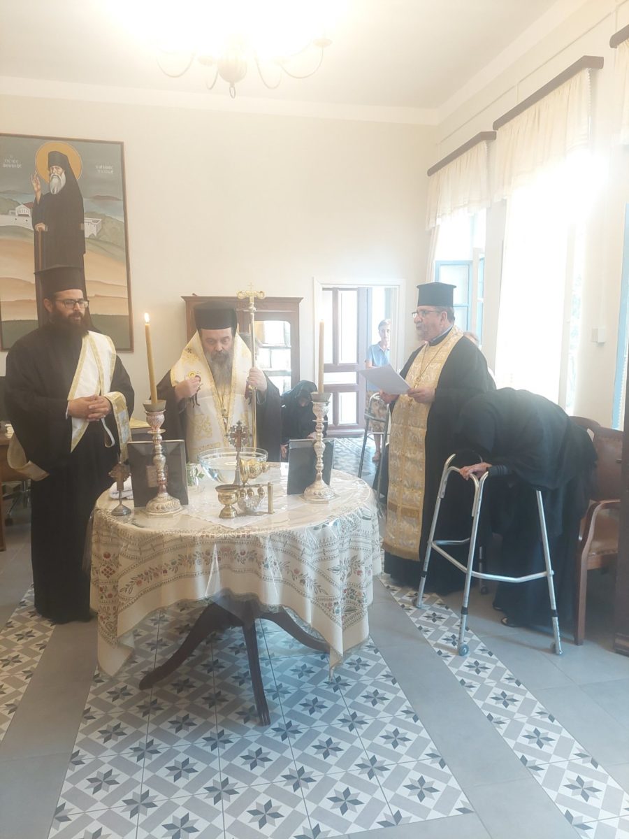 Ὁ Σεβασμιώτατος Μητροπολίτης, πνευματικὸς προστάτης τῆς Μονῆς, κ.κ. Μᾶρκος, λίαν συγκεκινημένος ἐτέλεσε κατὰ τὸ Τυπικὸν τῆς Ἐκκλησίας τὸν ἁγιασμὸν ἐπὶ τοῖς ἐγκαινίοις τῆς Βιβλιοθήκης τῆς Ἱ. Μονῆς, μὲ τὴν παρουσία καὶ τὴν προσευχητικὴν συνδρομὴν τοῦ Ἀρχιδιακόνου τῆς Μητροπόλεώς π. Ἀποστόλου Λάρδα καὶ τοῦ Πρωτοπρεσβυτέρου π. Παντελεήμονος Καλεώδη. Τὰ τῆς σεμνῆς τελετῆς καὶ τῆς μοναστηριακῆς δοχῆς ἐπεμελήθη ἡ φιλόξενος Ἀδελφότης τῆς Ἱ. Μονῆς ὑπὸ τὴν πεπνυμένην καθοδήγησιν τῆς Ὁσιωτάτης Μητρὸς καὶ Καθηγουμένης των Δοσιθέας μοναχῆς.