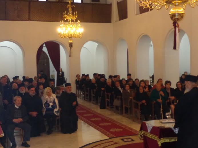 Ακολούθησε ο μέγας πανηγυρικός εσπερινός των εγκαινίων, χοροστατούντος του Αρχιεπισκόπου Κρήτης κ. Ειρηναίου, συμπροσευχομένων των μητροπολιτών Λάμπης κ. Ειρηναίου, Πέτρας κ. Νεκταρίου, Κισάμου κ. Αμφιλοχίου, Κυδωνίας κ. Δαμασκηνού, Αρκαλοχωρίου και του επισκόπου Ανδίδων κ. Χριστοφόρου.
