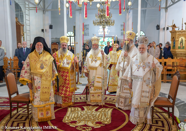 Προεξήρχε ο Σεβασμιώτατος Μητροπολίτης Σερβίων και Κοζάνης κ. Παύλος, συλλειτουργούντων των Σεβασμιωτάτων Μητροπολιτών Δράμας κ. Παύλου, ο οποίος χοροστάτησε και στον Όρθρο, Ελασσώνος κ. Χαρίτωνος, του Θεοφιλεστάτου Επισκόπου Θερμών κ. Δημητρίου και του Σεβ. Μητροπολίτου Βεροίας, Ναούσης και Καμπανίας κ. Παντελεήμονος, ο οποίος κήρυξε τον θείο λόγο και ανέγνωσε στο τέλος του ιερού μνημοσύνου επετειακή ομιλία για την γενοκτονία.