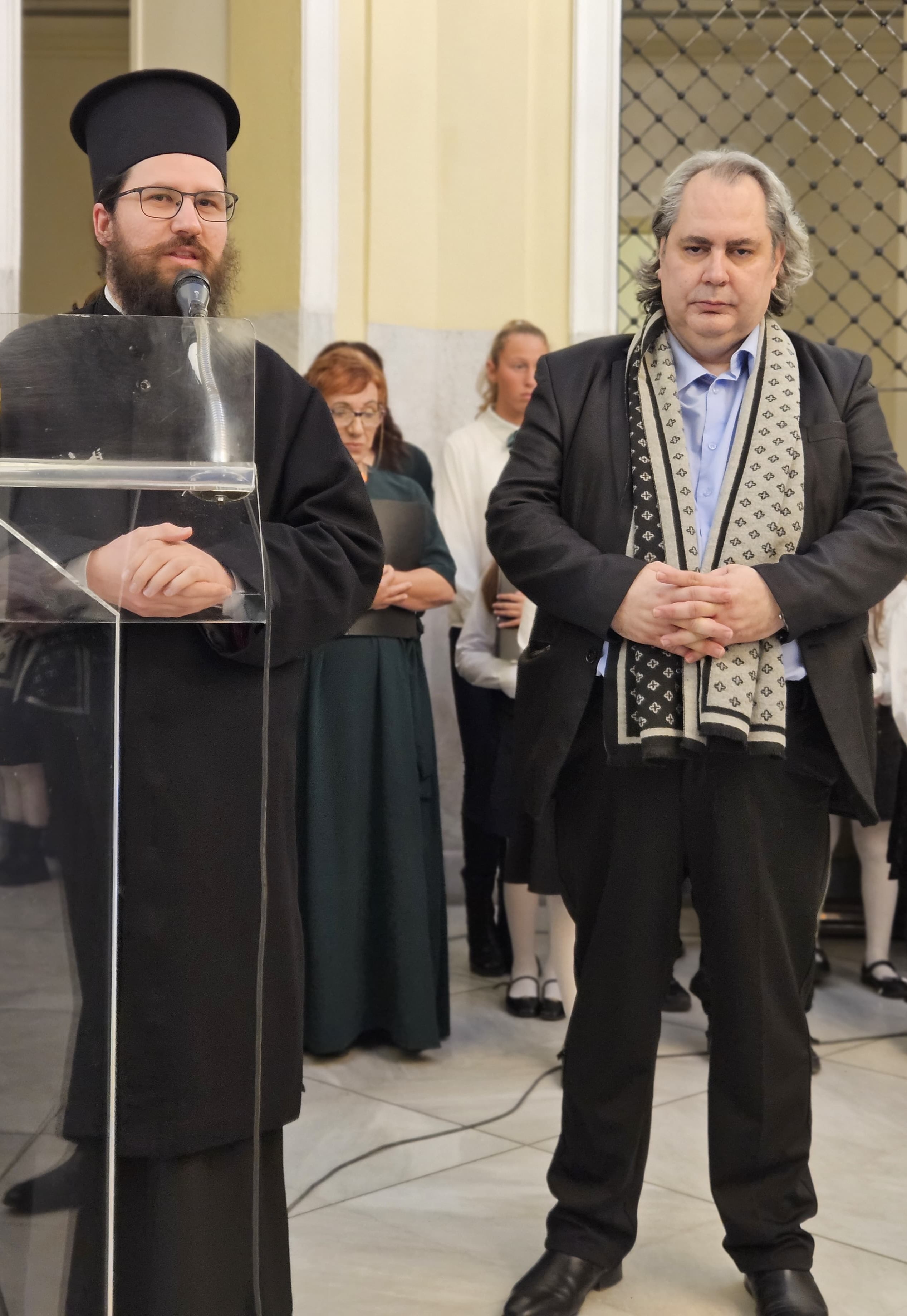 Μετά το πέρας της μουσικής πανδαισίας, τον λόγο πήρε ο Πρωτοπρεσβύτερος π.Βασίλειος Σιγάλας εκ μέρους της Ιεράς Μητροπόλεως Πειραιώς, μεταφέροντας χαιρετισμό και ευχές Του Σεβασμιωτάτου Μητροπολίτου Πειραιώς κ.κ.Σεραφείμ για το νέο Τμήμα του Ωδείου της Ι.Μ.Π. και για την πρωτοβουλία τέτοιων εκδηλώσεων που προβάλλουν και ευαισθητοποιούν τον άνθρωπο και την κοινωνία.