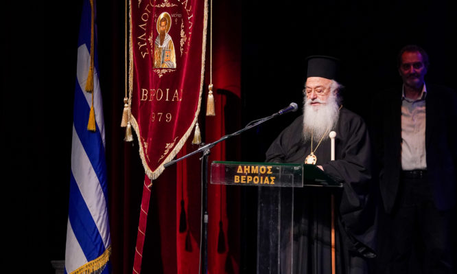Ο Σεβασμιώτατος στον χαιρετισμό του ανέφερε μεταξύ άλλων: Ὁ Ἑλληνισμός τιμᾶ φέτος τή θλιβερή ἐπέτειο τῆς Μικρασιατικῆς καταστροφῆς καί τοῦ ξερριζωμοῦ τῶν πατέρων μας ἀπό τίς πατρογονικές του ἑστίες στή Μικρά Ἀσία. Ἰδιαιτέρως ὅμως τήν τιμοῦμε ἐμεῖς ἐδῶ στή Βέροια καί στήν Ἠμαθία, καθώς πολλοί ἀπό τούς συμπολίτες μας ἕλκουν τήν καταγωγή τους ἀπό τήν ποτισμένη μέ τό αἷμα τῶν ἁγίων ἀλλά καί τῶν Ἑλλήνων γῆ τῆς Μικρᾶς Ἀσίας, καί οἱ γονεῖς τους καί οἱ παποῦδες τους ἦλθαν ἀπό ἐκεῖ πρόσφυγες, διωγμένοι, ταλαιπωρημένοι, χωρίς νά ἔχουν τίποτε μαζί τους καί ἀγωνίσθηκαν γιά νά σταθοῦν καί πάλι ὄρθιοι καί νά συνεχίσουν τή ζωή τους. Μάλιστα ὑπάρχουν καί κοινότητες πού τά ὀνόματά τους παραπέμπουν στή Μικρασιατική καταγωγή τῶν κατοίκων τους, πού μέ τήν παρουσία τους, μέ τόν πολιτισμό πού μετέφεραν, μέ τά ἤθη καί τά ἔθιμά τους, μέ τό ἀνοικτό πνεῦμα τους πλούτισαν τήν τοπική παράδοση τῆς Μακεδονίας, πού μόλις εἶχε ἀπελευθερωθεῖ, καί συνέβαλαν σημαντικά στήν ἀνόρθωσή της.