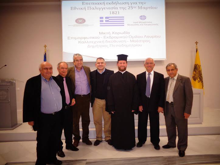 Με επιτυχία πραγματοποιήθηκε η επετειακή εκδήλωση για την Εθνική Παλιγγενεσία της 25ης Μαρτίου 1821, το Σάββατο 26 Μαρτίου 2016, η οποία έλαβε χώρα στο Πνευματικό Κέντρο του Επισκοπείου της Ιεράς Μητροπόλεως Μεσογαίας και Λαυρεωτικής στο Λαύριο.