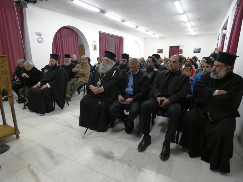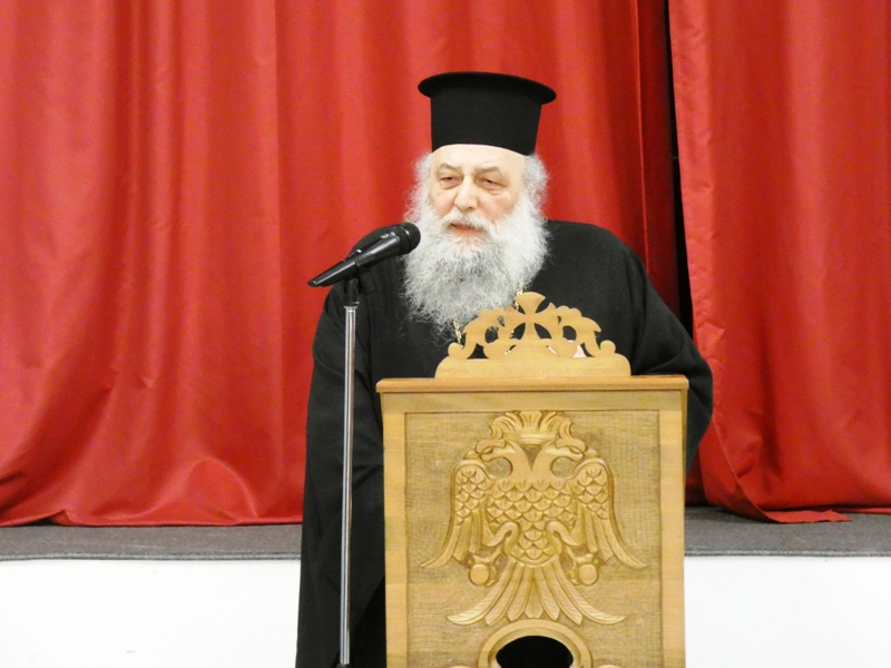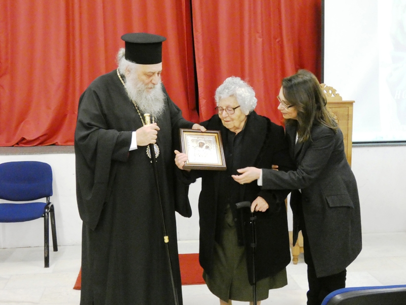 Τον λόγο έλαβε στη συνέχεια ο Σεβασμιώτατος, ο οποίος συνεχάρη τον Εφημέριο και το Εκκλησιαστικό Συμβούλιο για την πρωτοβουλία τους, ευχαρίστησε θερμά τον παλαίμαχο και καταξιωμένο Ιατρό και άνθρωπο της προσφοράς κ. Αντώνιο Αρκά και με πολλή συγκίνηση εστράφη στο πρόσωπο της παρισταμένης και τιμωμένης μεγαλύτερης στην ηλικία (96 ετών) μητέρας κ. Αικατερίνης Μπογιατζή, στην οποία και προσέφερε μια Εικόνα της Παναγίας μας της Εκατονταπυλιανής.