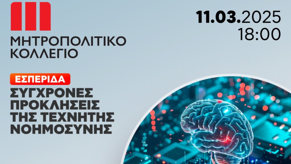 Το Μητροπολιτικό Κολλέγιο, ο Δικηγορικός Σύλλογος Ρόδου, η Ιερά Μητρόπολη Ρόδου και το Κέντρο Μελέτης του Εγκλήματος διοργανώνουν με τη στήριξη της Περιφέρειας Νοτίου Αιγαίου, την Τρίτη 11 Μαρτίου 2025 και ώρα 18:00, στη Ρόδο (Αίθουσα Συνεδριάσεων Περιφερειακού Συμβουλίου), επιστημονική εσπερίδα με θέμα: «Σύγχρονες Προκλήσεις της Τεχνητής Νοημοσύνης».