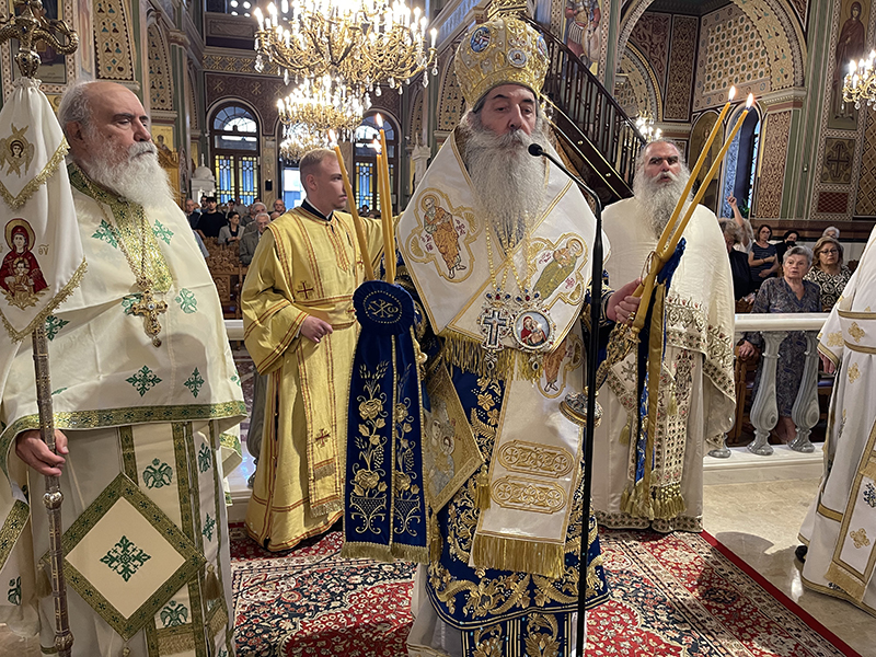 Στην ακολουθία του Όρθρου και τη Θεία Λειτουργία χοροστάτησε, ιερούργησε και κήρυξε τον θείο λόγο ο Σεβασμιώτατος Μητροπολίτης Πειραιώς κ. Σεραφείμ.