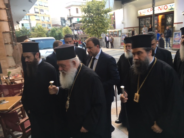 Ο Αρχιεπίσκοπος στον χαιρετισμό του, μεταξύ άλλων, ανέφερε πως η επίσκεψή του στη Μητρόπολη Σερρών είναι γεμάτη ευχάριστες εκπλήξεις. «Στη συνάντηση των ματιών μας, στο κοίταγμα του προσώπου σας, στις εκδηλώσεις σας, ομολογουμένως παρουσιάζεται κάτι το αλλιώτικο, που δεν το συναντάμε εύκολα κάτω στην παγερή Αθήνα» είπε ο Αρχιεπίσκοπος. Αναφέρθηκε στην άριστη συνεργασία που έχει με τον Μητροπολίτη Σερρών κ. Θεολόγο, μιλώντας για τη σύνεση και τη δημιουργικότητά του. Τον ευχαρίστησε για την προσφορά του στην Εκκλησία και ευχήθηκε ο Θεός να του δίνει πολλά χρόνια, ενώ αναφερόμενος στις δυσκολίες της εποχής, ο Αρχιεπίσκοπος κάλεσε τους παρευρισκόμενους να παρακαλούν τον Θεό να δείξει την ευσπλαχνία του και να σώσει για ακόμη μία φορά τον τόπο.