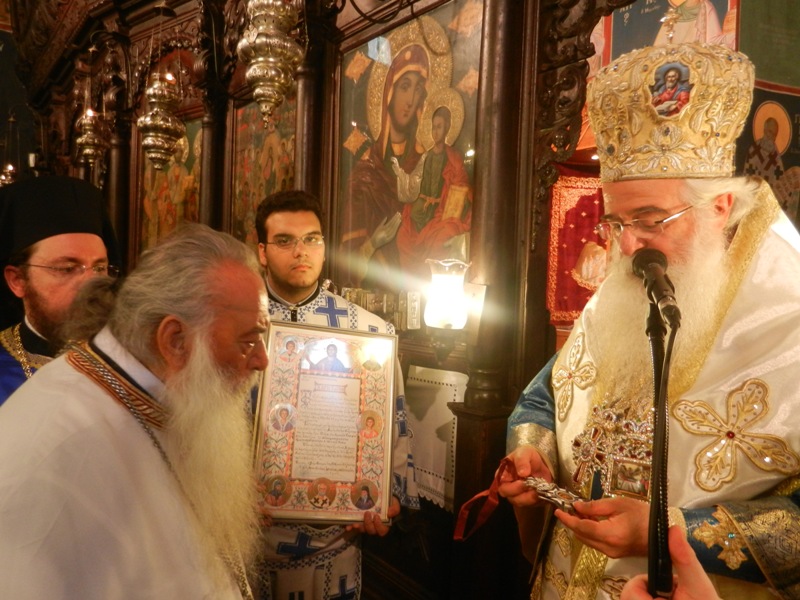 Τιμήθηκε με τον έπαινο του Υπουργείου Κοινωνικών Υπηρεσιών, ως εθελοντής αιμοδότης, ενώ το 2011 έλαβε από τον Σεβ. Ποιμενάρχη μας κ. Ιγνάτιο την Ανώτατη Τιμητική Διάκριση της Ιεράς Μητροπόλεως Δημητριάδος, τον Χρυσό Σταυρό μετά Διπλώματος, ως έμπρακτη αναγνώριση της λαμπρής και ακάματης Ιερατικής του προσφοράς και διακονίας.