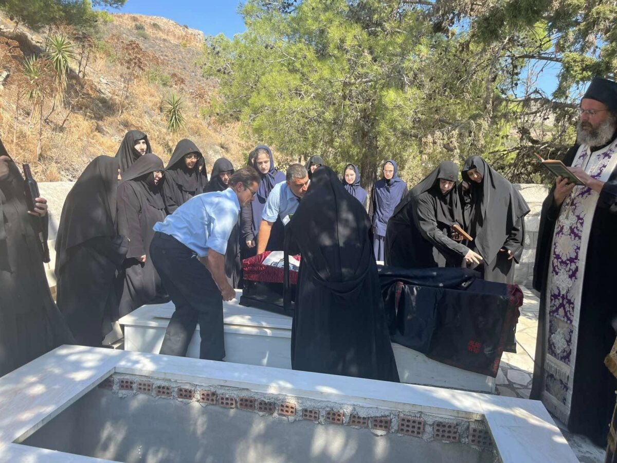 Ακολούθησε η ταφή εντός του Ι. Ησυχαστηρίου .