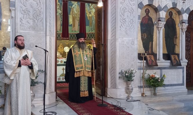 Το Ιεροψαλτικό αναλόγιο διηκόνησαν μέλη του Συλλόγου Ιεροψαλτών Κορινθίας «ΑΓΙΟΣ ΚΥΡΙΑΚΟΣ Ο ΥΜΝΟΓΡΑΦΟΣ».