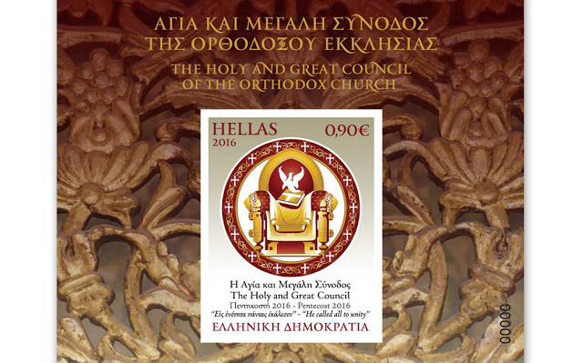 Το ιστορικό γεγονός «Η Αγία και Μεγάλη Σύνοδος» αποτυπώνουν τα Ελληνικά Ταχυδρομεία κυκλοφορώντας Αναμνηστική Σειρά Γραμματοσήμων με ένα Φεγιέ, συνοδευόμενο από Φάκελο Πρώτης Ημέρας Κυκλοφορίας, Λεύκωμα της σειράς και Φύλλο Προσωπικού Γραμματοσήμου με την μορφή και την υπογραφή του Οικουμενικού Πατριάρχη Βαρθολομαίου.