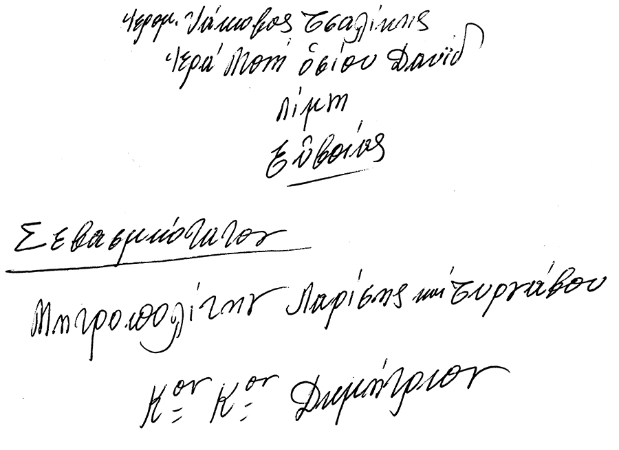 Για πρώτη φορά δημοσιεύουμε τις δύο αποσταλείσες στο Μητροπολίτη μας επιστολές σε επίρρωση των όσων αναφέρθησαν, για να αντιληφθούν οι κάθε είδους αγωνιζόμενοι ότι το βραβείο της άνω κλήσεως προσφέρεται από τον Κύριο σ᾽ εκείνους που προσβλέπουν στην άκρα ταπείνωσή Του, συνοδοιπορούντες με Αυτόν. Αυτό ήταν και το μεγαλείο του εκκλησιαστικού φρονήματος του γέροντα και της ταπεινής χαριτωμένης ψυχής του.