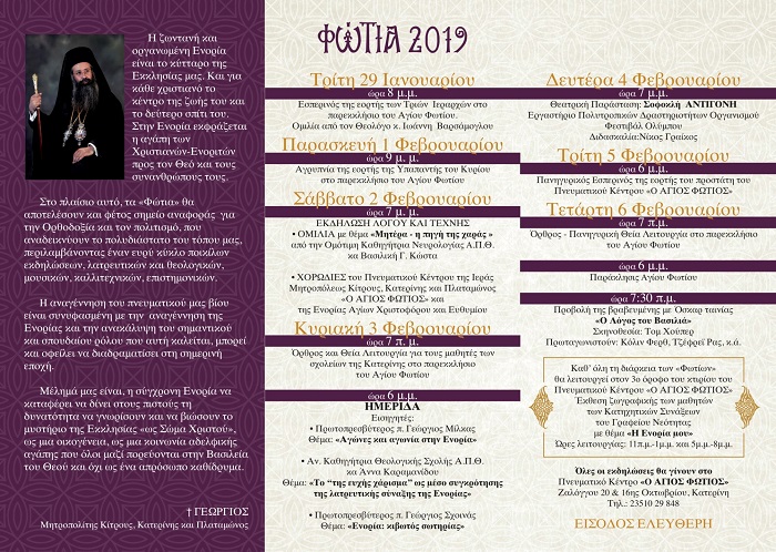 Έναρξη εκδηλώσεων «Φώτια 2019» στη Μητρόπολη Κίτρους