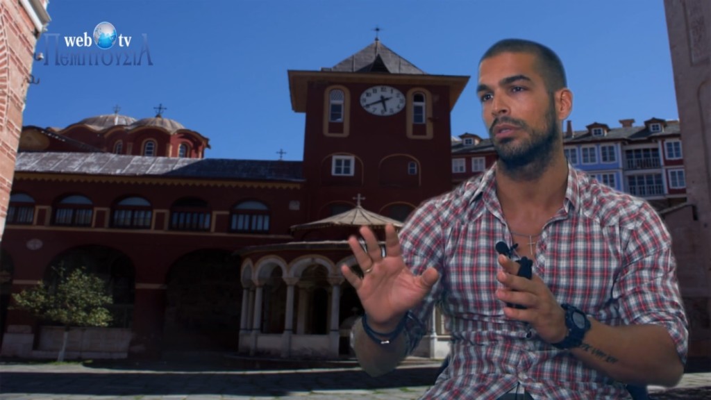 Με φόντο την Ιερά Μονή Βατοπαιδίου και ένα κομποσκοίνι στο αριστερό χέρι, ο ηθοποιός που έγινε γνωστός στο ευρύ κοινό από την συμμετοχή του στην τηλεοπτική σειρά «Βασιλιάδες» αποκάλυψε ότι θέλει να ακολουθεί πνευματική ζωή.