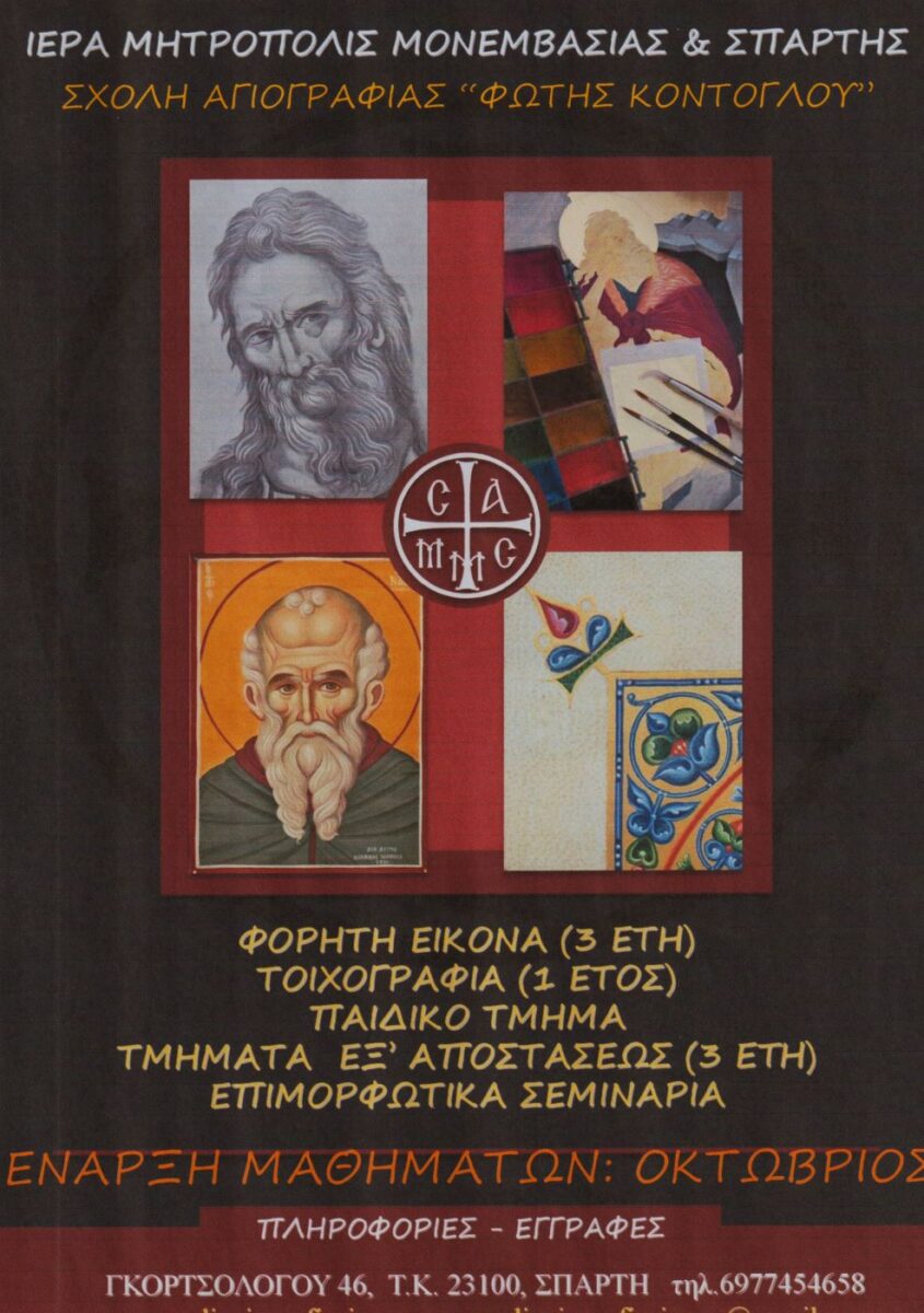 Από τη Σχολή Αγιογραφίας ‘’Φώτης Κόντογλου’’ της Ιεράς Μητροπόλεώς μας ανακοινώνεται ότι έχουν ξεκινήσει οι εγγραφές για τη νέα ακαδημαϊκή χρονιά. Η αίτηση εγγραφής πραγματοποιείται μέσω της ιστοσελίδας της Σχολής www.sxoliagiografiasimms.gr, όπου οι ενδιαφερόμενοι συμπληρώνουν το πεδίο και στη συνέχεια οφείλουν να αποστείλουν την αίτηση στην ηλεκτρονική διεύθυνση της Σχολής sxoliagiografiasimms@gmail.com. Σημειώνεται ότι και οι δευτεροετείς φοιτητές πρέπει να πραγματοποιήσουν εγγραφή με τον παραπάνω τρόπο.