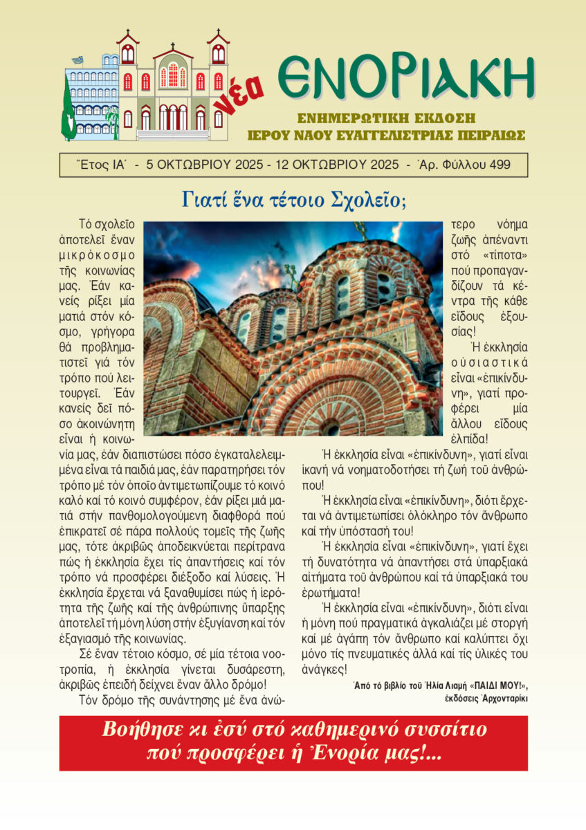 «Νέα Ενοριακή» 5 Οκτωβρίου – 12 Οκτωβρίου 2025