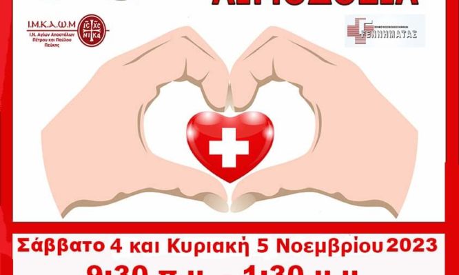 Ενοριακή Αιμοδοσία θα διεξαχθεί στη Μητρόπολη Κηφισίας, σύμφωνα με το κάτωθι Πρόγραμμα:
