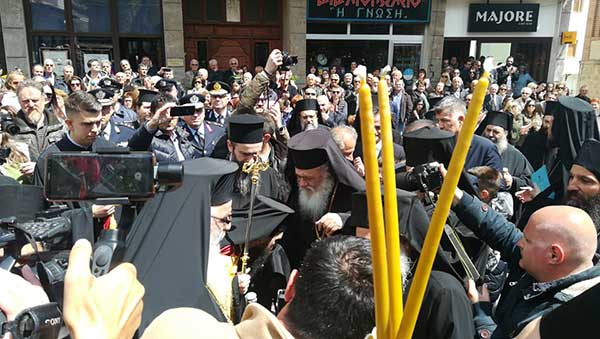Η επίσημη υποδοχή από τις τοπικές αρχές πραγματοποιήθηκε στην κεντρική πλατεία της πόλης κι αμέσως μετά με πομπή κατευθύνθηκαν στον ιερό μητροπολιτικό ναό, όπου ο Αρχιγραμματέας της Ιεράς Συνόδου της Εκκλησίας της Ελλάδος Αρχιμανδρίτης Φιλόθεος Θεοχάρης ανέγνωσε την εγκύκλιο της Ιεράς Συνόδου και το Προεδρικό Διάταγμα κι αμέσως μετά τελέσθηκε η ενθρόνιση.