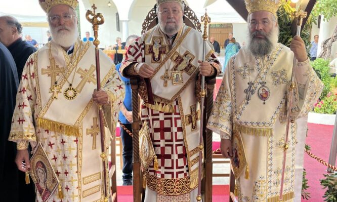 Ο Σεβασμιώτατος επίσης ευχαρίστησε θερμά τον Σεβασμιώτατο Μητροπολίτη Αρκαλοχωρίου, Καστελλίου και Βιάννου κ. Ανδρέα, ο οποίος προσήλθε την κυριώνυμο ημέρα και έλαβε μέρος στην Τρισαρχιερατική Θεία Λειτουργία, απηύθυνε δε λόγους πατρικούς προς το πολυπληθές εκκλησίασμα.