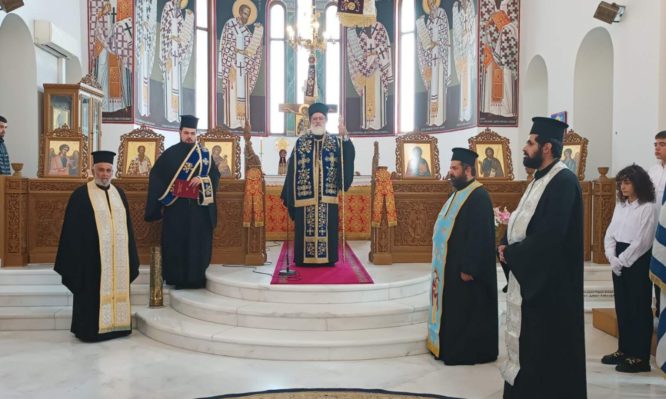 Στη συνέχεια ο κ. Ανδρέας τέλεσε την επιμνημόσυνη δέηση στο μνημείο της πόλεως, ακολούθησε η κατάθεση στεφάνων και η μαθητική παρέλαση.