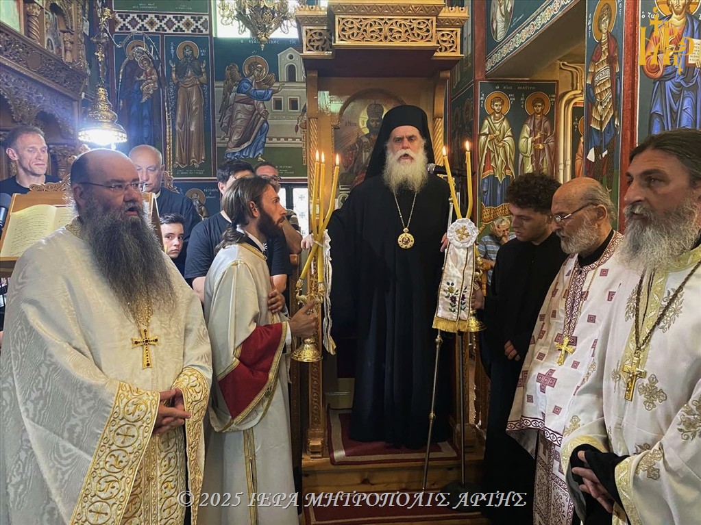 Της Ακολουθίας προεξήρχε ο Σεβασμιώτατος Μητροπολίτης Άρτης κ. Καλλίνικος, ο οποίος κήρυξε τον Θείο Λόγο, αναφερόμενος στη ζωή και το αποστολικό έργο των δύο Μεγάλων Αποστόλων της Εκκλησίας μας.