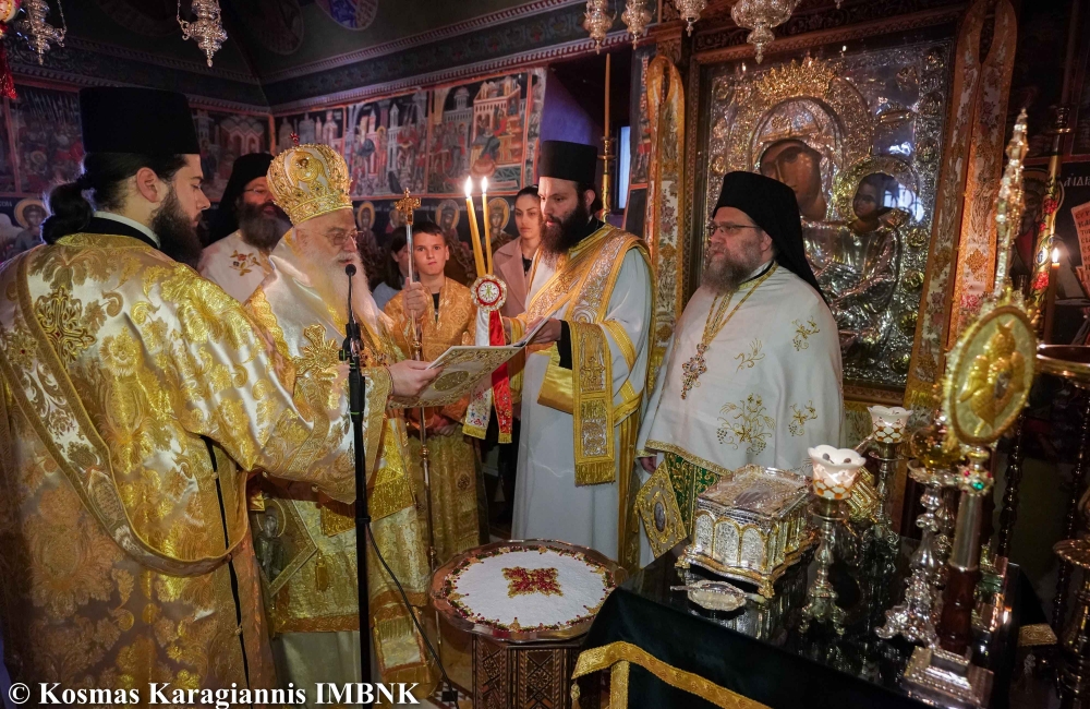Ο Σεβασμιώτατος Μητροπολίτης μας κ. Παντελεήμων στην ομιλία του ευχήθηκε στον εορτάζοντα Αρχιμ. Ιερεμία Γεωργαλή, Αρχιερατικό Επίτροπο Βεργίνης και στην αδελφή Ματρώνα, που άγουν τα ονομαστήρια τους, αναφέροντας μεταξύ άλλων: Χθές ἡ Ἁγία μας Ἐκκλησία ἑόρτασε τίς Μυροφόρες γυναῖκες, τίς εὐγενεῖς ἐκεῖνες ὑπάρξεις, πού ἀφιέρωσαν τή ζωή τους στόν Χριστό καί τόν ἀκολούθησαν μέ πίστη καί ἀφοσίωση ὄχι μόνο στή Γαλιλαία, ἐκεῖ ὅπου θαυματουργοῦσε, ἀλλά καί στόν Γολγοθᾶ, τήν ὥρα τῆς σταυρικῆς θυσίας καί τοῦ θανάτου του, καί ἀκόμη μέχρι τόν κῆπο, ὅπου ἐνεταφίασε τό ἄχραντο σῶμα του ὁ Ἰωσήφ ὁ ἀπό Ἀριμαθαίας, γιά νά τοῦ προσφέρουν «εἰς ἀγάπης ἀντέκτισιν» τά μύρα τῆς ἀφοσιώσεώς τους.