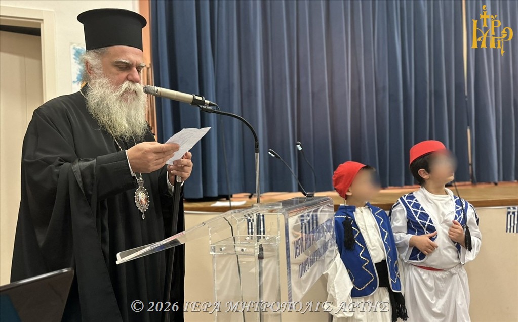 Πραγματοποιήθηκε το Σάββατο 21 Μαρτίου 2026, το απόγευμα, στο Πνευματικό Κέντρο της Ιεράς Μητροπόλεως Άρτης «Άγιος Ιωάννης ο Θεολόγος», εορταστική εκδήλωση για την εθνική επέτειο της 25ης Μαρτίου.