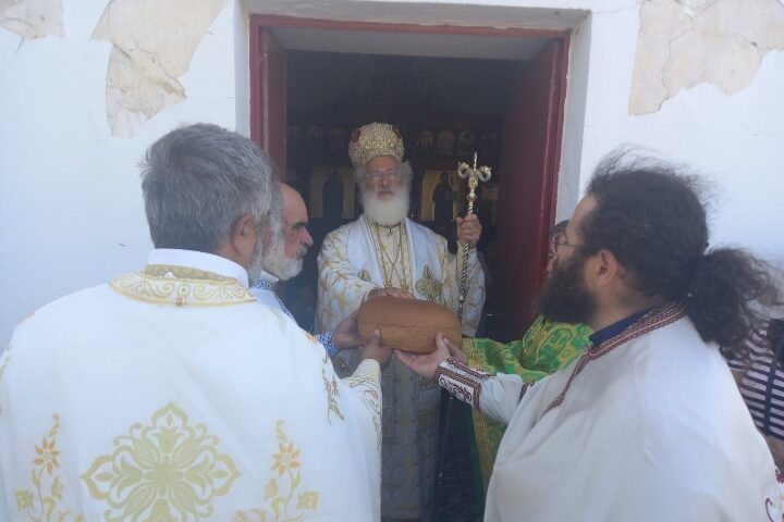 Ο Σεβασμιώτατος αφού κήρυξε τον Θείο λόγο, ευλόγησε τους προσφερόμενους άρτους και ευχήθηκε έτη πολλά και ευλογημένα.