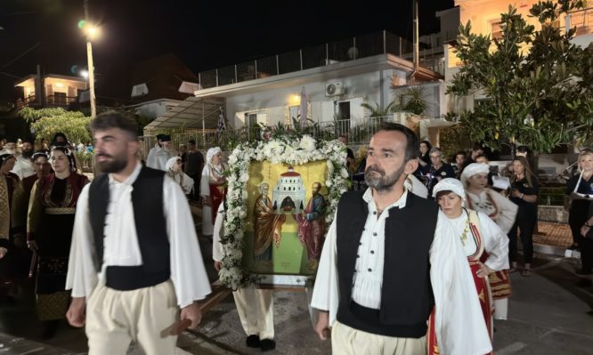 Στον Ιερό Ναό των Αγίων Αποστόλων Πέτρου και Παύλου (Κοντίτο) Θηβών τέλεσε τον Εσπερινό της εορτής των Πρωτοκορυφαίων Αποστόλων ο Σεβασμιώτατος Ποιμενάρχης Θηβών κ. Γεώργιος την Τετάρτη 28 Ιουνίου 2023, πλαισιούμενος από ιερείς της επαρχίας Θηβών, τους άρχοντες και πλήθος πιστών.