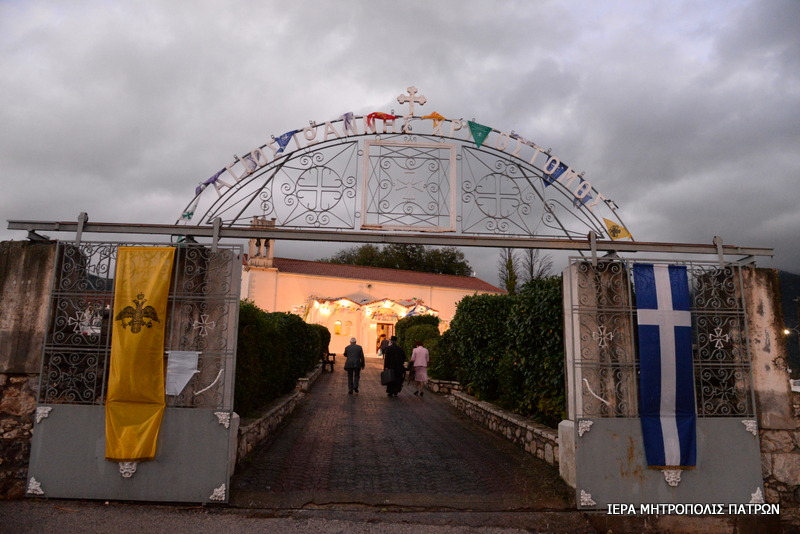 Στόν πανηγυρικό Ἑσπερινό πού ἐτελέσθη τό Σάββατο 12.11.2016, ἐχοροστάτησε μέ ἂδεια καί εὐλογία τοῦ Σεβασμιωτάτου Μητροπολίτου Μαντινείας καί Κυνουρίας κ. Ἀλεξάνδρου, ὁ Σεβασμιώτατος Μητροπολίτης Πατρῶν κ. Χρυσόστομος, συγχοροστατούντων τοῦ Σεβασμιωτάτου Μητροπολίτου Μαντινείας καί Κυνουρίας κ. Ἀλεξάνδρου καί τοῦ Θεοφιλεστάτου Ἐπισκόπου Κερνίτσης κ. Χρυσάνθου.