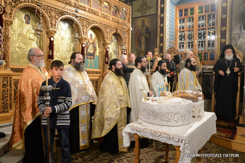 Ἀνήμερα, Κυριακή 13.11.2016, ἐτελέσθη Πανηγυρική Θεία Λειτουργία, προεξάρχοντος τοῦ Σεβασμιωτάτου Μητροπολίτου Πατρῶν κ.κ. Χρυσοστόμου καί συνιερουργοῦντος τοῦ Θεοφιλεστάτου Ἐπισκόπου Κερνίτσης κ. Χρυσάνθου.
