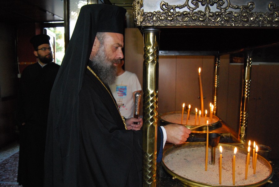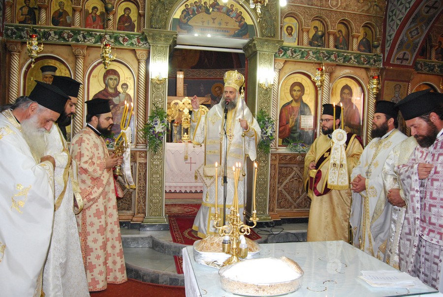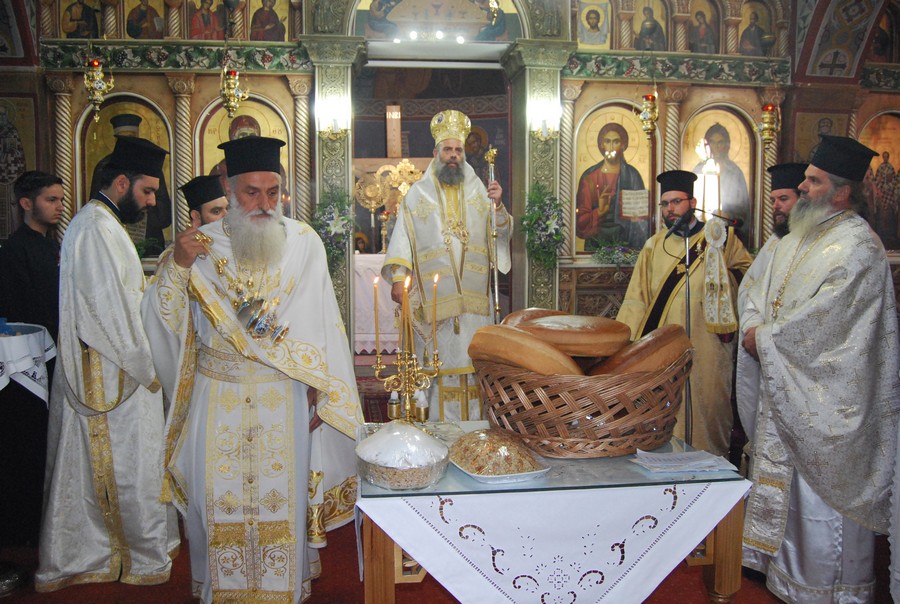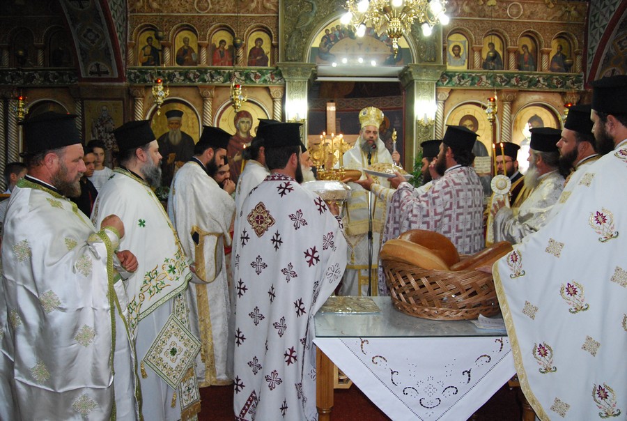Προ της απολύσεως, ευλόγησε τους άρτους και το κόλλυβο προς τιμήν του Αγίου.