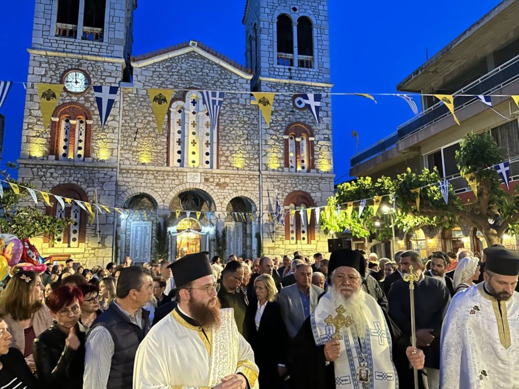 Μετά τον Εσπερινό ακολούθησε η λιτάνευση της εικόνας του Αγίου στους δρόμους της κωμοπόλεως.