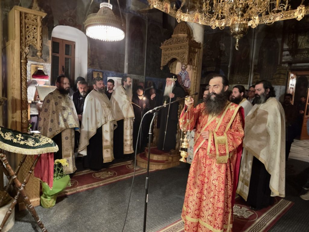 Το εσπέρας της Παρασκευής 5 Μαΐου 2023 ξεκίνησε η Ιερά Αγρυπνία, η οποία τελείωσε το πρωί του Σαββάτου 6 Μαΐου, στον Εσπερινό της οποίας χοροστάτησε ο Σεβασμιώτατος Ποιμενάρχης κ. Γεώργιος, πλαισιούμενος από τον Καθηγούμενο της Ιεράς Μονής παν. αρχιμ. π. Νεκτάριο Τσεκούρα, ιερείς της Μητροπόλεως και άλλων Μητροπόλεων, καθώς και πολλούς πιστούς, οι οποίοι παρά τις δυσμενείς καιρικές συνθήκες πήγαν στο Μοναστήρι για να τιμήσουν τη μνήμη του Οσίου.