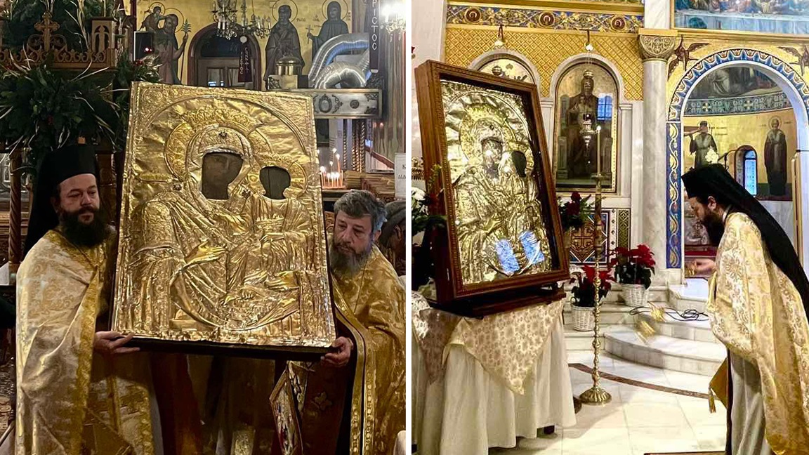 Στη συνέχεια, η Ιερά Εικόνα επέστρεψε με λιτανευτική πομπή στο θρονί της και ο Πανοσιολ. Πρωτοσύγκελλος π. Επιφάνιος κρέμασε και άναψε την νέα αργυρά ακοίμητη Κανδύλα, την οποία προσέφερε ως ευλογία η Α.Θ.Π. ο Οικουμενικός Πατριάρχης κ.κ. Βαρθολομαίος, κατά την επίσκεψή του στον Ιερό Ναό τον περασμένο Νοέμβριο.
