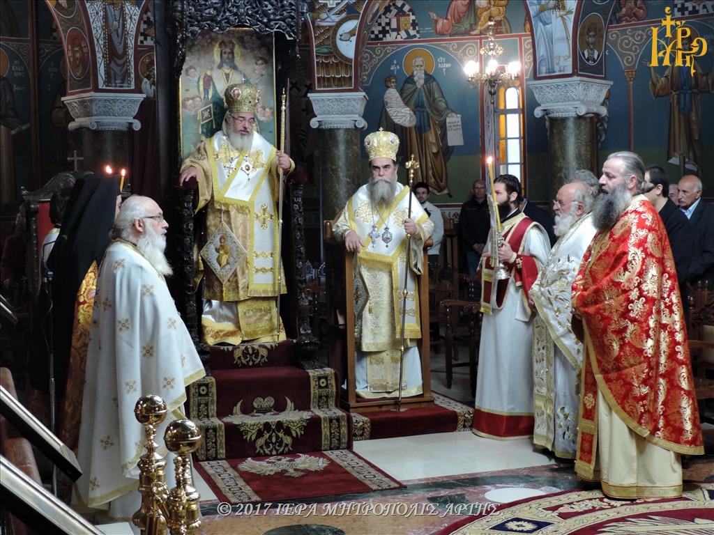 Με ιεροπρέπεια και λαμπρότητα κορυφώθηκαν την Πέμπτη 26 Οκτωβρίου 2017 οι λατρευτικές εκδηλώσεις προς τιμήν του Αγίου Μεγαλομάρτυρος Δημητρίου του Μυροβλύτου στον φερώνυμο Μητροπολιτικό Ναό στην Άρτα.