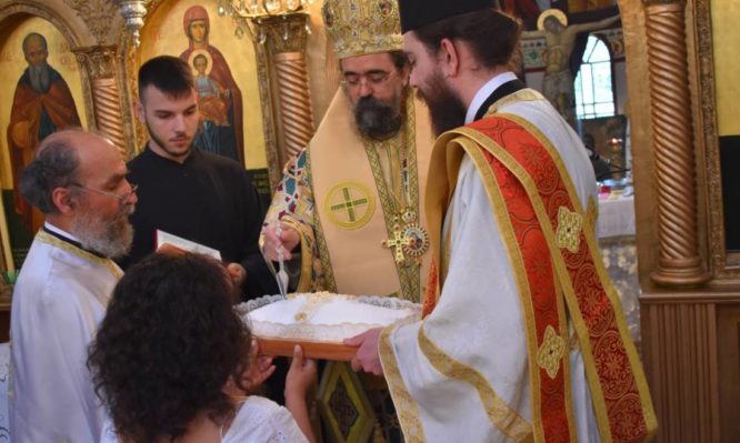 Κατά τήν Ἀρχιερατική Θεία Λειτουργία τόν Σεβασμιώτατο πλαισίωσαν ὁ ἑορτάζων ἐφημέριος τοῦ χωριοῦ π.Διονύσιος Παπαϊωαννίδης καί οἱ δυό διάκονοι τῆς Ἱερᾶς Μητροπόλεως.