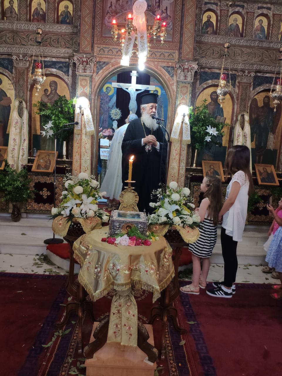 Την Δευτέρα 24 Ιουνίου, ημέρα κατά την οποία η Αγία μας Εκκλησία εορτάζει το Γενέθλιον του Τιμίου Προδρόμου και Βαπτιστού Ιωάννου, στον Ιερό Ναό του αγίου Παντελεήμονος Καμένων Βούρλων, τελέσθηκε Αρχιερατική Θεία Λειτουργία προεξάρχοντος του Σεβασμιωτάτου Μητροπολίτου Ζιχνών και Νευροκοπίου κ. Ιεροθέου , χοροστατούντος του Σεβασμιωτάτου Μητροπολίτου Φθιώτιδος κ. Νικολάου, με την ευλογητή παρουσία της αγίας Σιαγώνος του αγίου Ιωάννου.