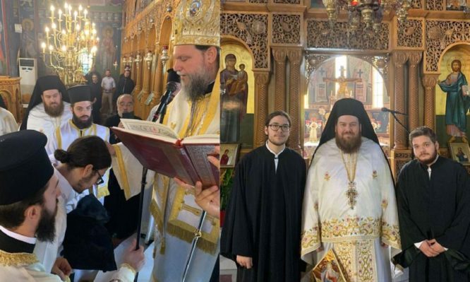 Μετά το πέρας της Θείας Λειτουργίας ο Σεβασμιώτατος χειροθέτησε Αναγνώστες τους κ. Ανδρέα Τυπάλδο και Κωνσταντίνο Μαλάκη, φοιτητές της Θεολογικής Σχολής του Πανεπιστημίου Αθηνών, οι οποίοι διακονούν το Ιερό Βήμα και το Ιερό Αναλόγιο με ιερό ζήλο και ενθουσιασμό.